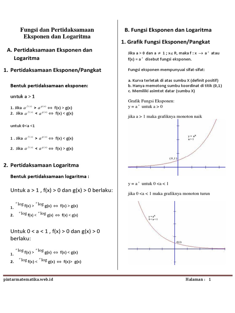 Definisi pertidaksamaan yang memuat nilai mutlak pertidaksamaan nilai mutlak adalah pertidaksamaan yang variabelnya di dalam tanda mutlak. Perlu kamu ketahui, persamaan eksponen terbagi menjadi dua jenis, yaitu persamaan eksponen sederhana dan persamaan eksponen tidak. Persamaan dan pertidaksamaan linier biasanya akan mulai kita pelajari saat kita berada di bangku kelas 10. Contoh soal materi logaritma jika dan , tentukan. Download ppt fungsi eksponen dan logaritma.