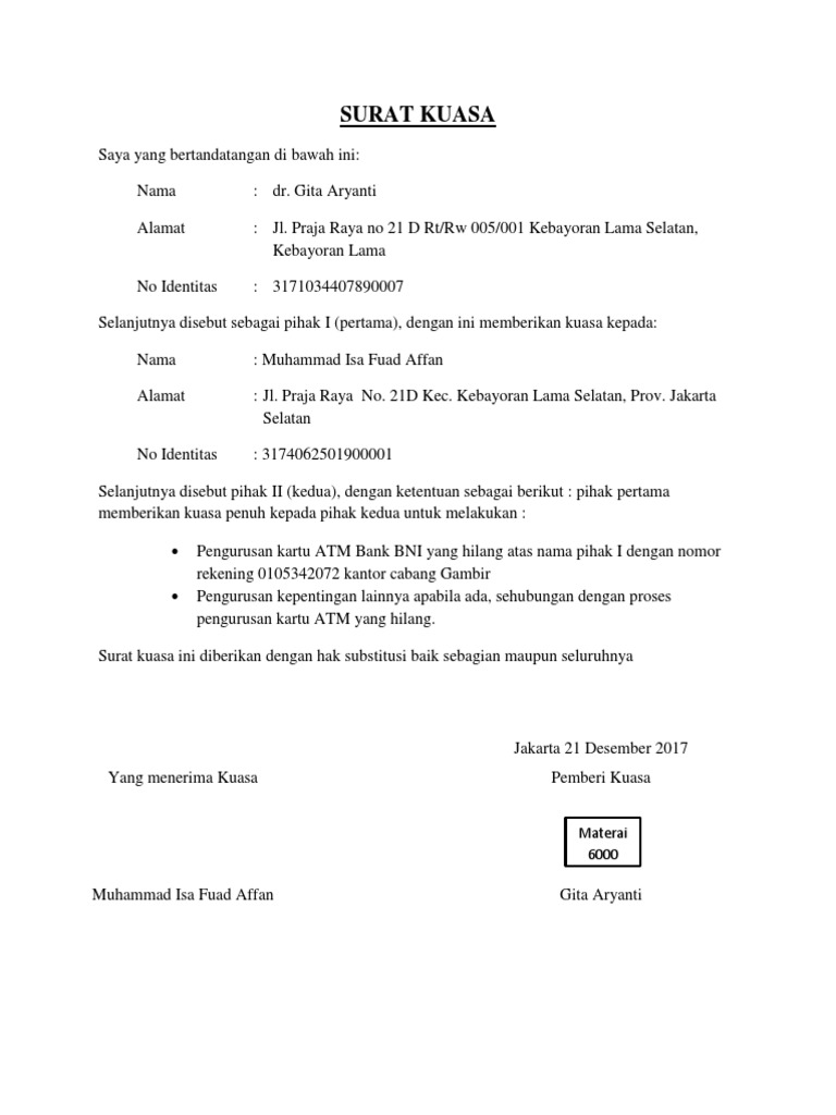 Setiap informasi yang tertera wajib terbukti keasliannya dan tujuan surat kuasanya tercantum jelas dalam surat. Apakah diantara kalian sudah ada yang pernak membuat surat pada umumnya surat kuasa sering digunakan sebuah hal yang berhubungan dengan pengambilan suatu barang, misalnya pengambilan gaji, uang, dana. Surat kuasa adalah surat yang dibuat dengan tujuan untuk memberikan wewenang kepada pihak tertentu guna melakukan atau melaksana kan suatu tugas atas nama si pemberi kuasa. Menulis nomor surat kuasa yang akan menjadi bukti pengarsipan. Point penting penulisan surat kuasa pengambilan uang. Untuk contoh surat kuasa bank lainnya, administrasi keuangan, surat pernyataan dan contoh administrasi untuk rekening/tabungan bank lainnya. Contoh surat kuasa pengambilan uang di bank. Contoh surat pemberian kuasa perseorangan ini, seperti: Apabila anda mengalami seperti kasus di atas, ada beberapa contoh surat kuasa pengambilan uang di bank bri, mandiri, bca, bni, btn, mega. Pengambilan uang dibank tidak bisa sembarangan terlebih nama rekening tersebut bukan atas nama kita. Apakah anda mencari contoh surat kuasa pengambilan ijazah? Keperluan mengambil uang di bank terkadang menjadi sangat penting apalagi dengan jumlah yang besar dan kepentingan yang banyak. Download contoh surat kuasa pengambilan jika contoh surat ini berguna untuk anda, berikan kontribusi kepada kami dengan membagikan contoh surat ini di sosial media melalui.